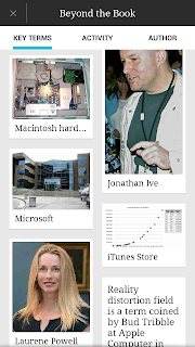 In Kobo there is the "Beyond the Book" feature. Say, the book mentioned Steve Jobs' wife, and there's a pic of her